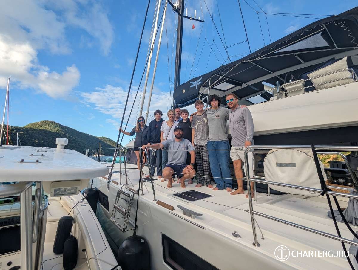 Where can I begin. My wife wanted to do something special for her birthday. We had all kinds of ideas and plans, however she wanted to do something extra special. She happened upon private charter boats and stumbled into Dreamcatcher. From the very beginning, Stef and Jake were prompt in their email replies and responses answering all the important questions as well as the ignorant ones since we had never done anything like this before. Jake and Stef took it in stride and were very kind and polite through the whole process down to the best ways to travel and get there, offering advice along the way. The conference call the week before was a big help as it answered a lot of questions that came up at the last minute such as things to pack, what to prepare for, down to last minute dining and drink choices. The day we arrived in St. Thomas we caught a cab from the airport to the marina where Captain Jake stood waiting for us with a cart to help us move all our gear from the cab to the boat. When we arrived at the boat, Stef was ready and willing to do whatever she needed to and welcome us aboard. “We are a shoe free ship so drop them in this basket and come on in!” We were shown where our sleeping quarters would be for the week. We already had a great idea of what we were walking into because the preference sheet as well as sleeping arrangements were well laid out for us prior to our arrival so we knew EXACTLY what to expect. I will say, it went above and beyond our expectations. Everything was tidy, clean, and neat. A welcome basket greeted us as soon as we entered our rooms that included a journal, welcome note from the crew, as well as sunscreen and towels. Since it was my wife’s birthday, they went above and beyond and decorated the door to our room with Happy Birthday banners. Before we could turn around, as we were all wary and famished from our travels, we were greeted with an appetizer and shown where the beverages were so we could immediately begin our vacation. We set sail and went to our first bay for the night and traveled to many on our seven-day tour. Captain Jake is excellent and knows the waters around us, as well as how to provide a smooth sail as to not disturb us or create any illness on our moves from port to port. We motored part of the journey and sailed the rest. He was willing and able to let us be involved in the process and stood by as we swapped sea stories of our own personal adventures through our lives. The food on board was top notch. Every meal was shared with laughter and joy as we indulged in what Stef prepared for us. Breakfast was fantastic. Lunch, even better. There were several days that she spent all day prepping for dinner. You could really tell she put her heart and soul into it as dinner was normally quiet as we all savored in the fare that she set out in front of us. Although we filled out preference sheets, we never really designated meals as we are uncomplicated and easy going. There were 5 of us in our party total and some had special requests, but Stef nailed every meal and fit everyone’s specific requests from beginning to end. You want chicken nuggets? No problem. Pizza? Why not. Fish tacos? Our pleasure. Fresh lobster on the grill that we caught while diving? Absolutely! We were never left leaving the table hungry and as the day melted on, there were always snacks available and of course, cold beverages of whatever we wanted. Before dinner every evening we had a light snack as well as hand crafted cocktails to boot to wash down our exciting days as we traded stories of our current and past adventures. My personal favorite of every day was saying goodbye to the day and blowing the conch shell as the sun set on the horizon. I am a little bit more of a night owl, so Jake and I got to sit up late many nights and chat. The conversation was warm, friendly, and welcoming as we shared about ourselves and learned about each other. There was much laughter to be had. We got to see so much on our journey that it is hard to put it all into words. Beautiful bays, amazing wildlife, shipwrecks, private beaches and so much more. What do you want to do today? Lay on the net and take a nap? Hang some hammocks and swing in the breeze? Float around on some rafts or swim? Give paddle boarding a try? Go to a private beach and sunbathe? Get scuba certified and go for a dive? How about a snorkel? Grab some lunch from a floating taco barge or stop in town for some shopping? Literally, anything that we wanted, they accommodated without question. I wanted to also point out that I personally, was a little reluctant about vacationing with two dogs on board a 47’ catamaran, but Daisy and Parker are so well behaved, they left an impression on our hearts. The day of my wife’s birthday, we were able to use the boat as our home and decorate it for her to feel special. That evening, Stef and Jake secured a special cake made just for my wife and we were all able to enjoy it. The cake was so big, that we enjoyed the other half the next day! Stef split it in half and flopped it down on the table for us to all to delve into and enjoy. Towards the end, we were all presented with a video of our vacation that highlighted our top moments and passed to us to keep this memory forever. I could drone on and on how amazing this whole experience was, but I will leave you with these final thoughts. This experience has ruined all my other resort travels in the future as this was so perfect, nothing would compare to having this experience again. We went on a vacation for that purpose. To disconnect, unwind, and relax. We came as guests, but we left with friends. Jake and Stef will now be ingrained in our lives forever and there is absolutely no doubt in my mind, we will be back to see them again and again, and again. This vacation is everything you make it. The more specific you are with them about your wants, needs, and desires, the more perfect they will make it for you.