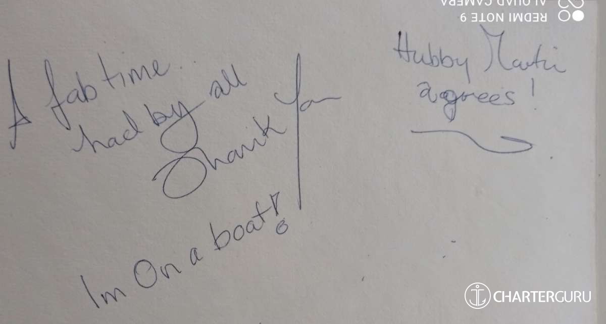 Lastly, Captain your experience, wisdom and knowledge gave us a strong sense and security in the sea . "You run a tight ship"
