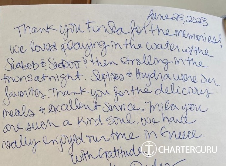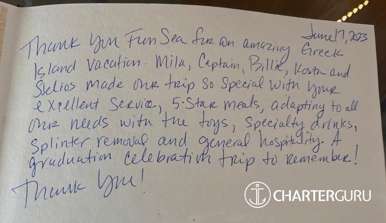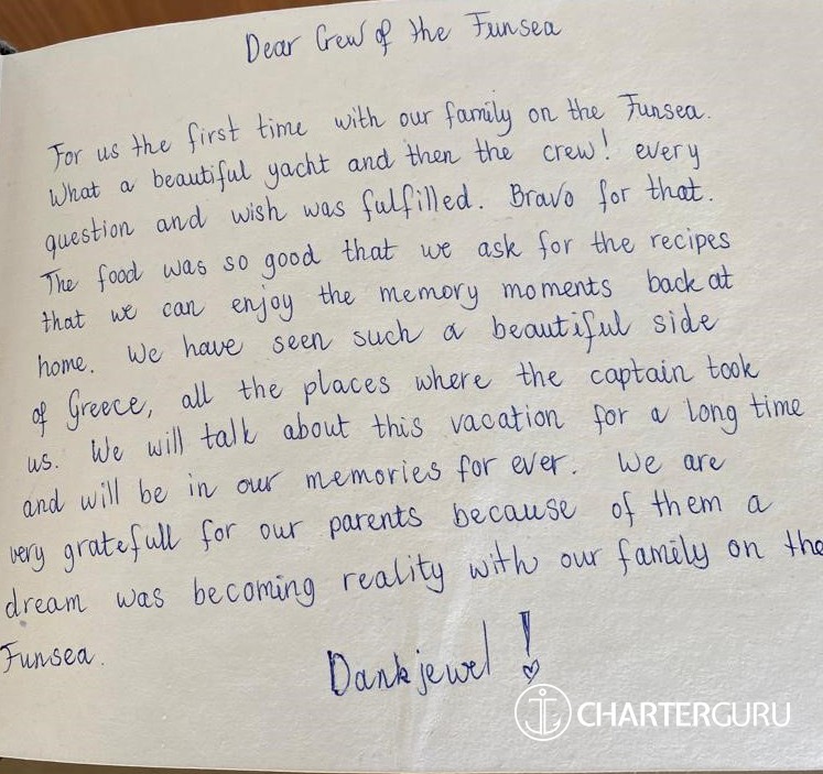 We have seen such a beautiful side of Greece, all the places where the captain took us. We will talk about this vacation for a long time and we will be in our memories forever. We are very grateful for our parents because of them a dream was becoming reality with our family on the FUNSEA