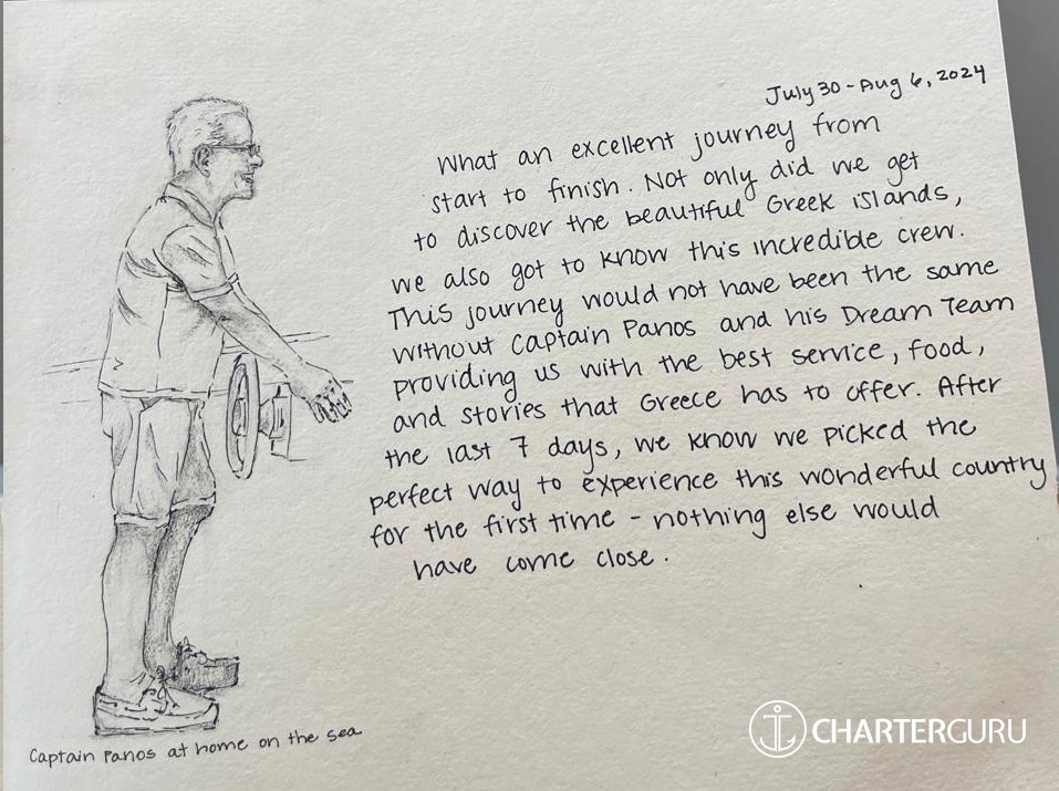 This journey would not have been the same without Captain Panos and his dream team providing us with the best service, food, and stories that Greece has to offer. After the last 7 days, we know we picked the perfect way to experience this wonderful country for the fists time - nothing else would have come close.