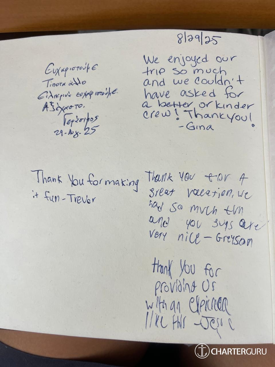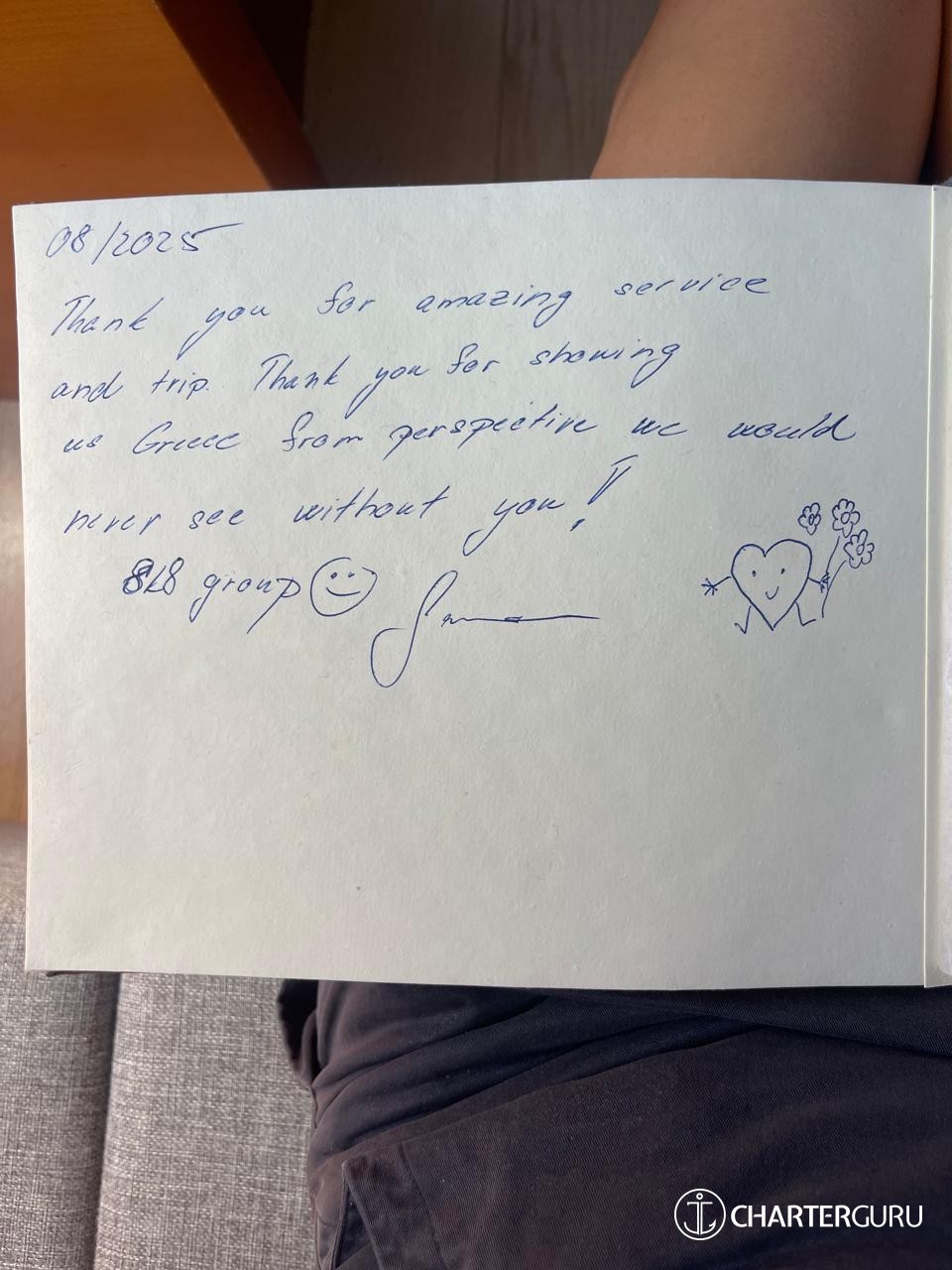 Our first trip in Greece and we were wowed!!! The crew was so accomodating and we loved spending our time with them.