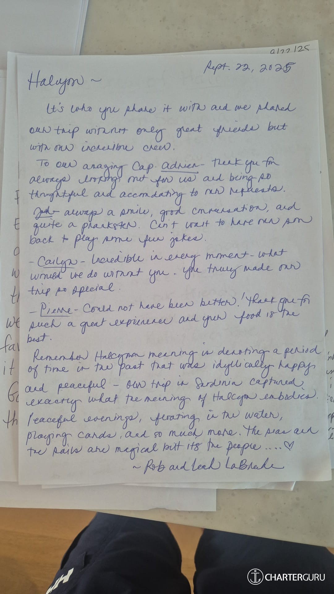 This is our second trip aboard Halcyon and it gets better and better when we didn't think that was possible. Adrien and Josh communicate effortlessly and make it look so easy to navigate this vessel in tight spaces. Pierre's food was a highlight - Beef Wellington was a showstopper! And Cailyn stepped into her demanding role with a warmth and can-do attitude that made her a wonderful addition to our week in Sardinia.