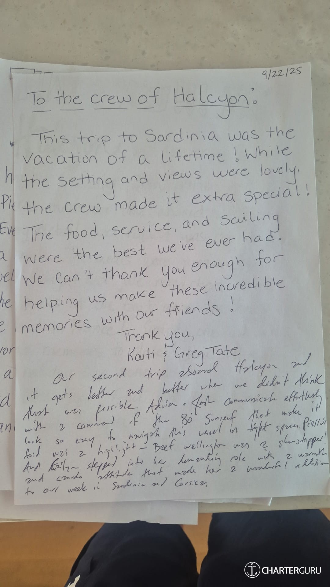 It's who you share it with and we shared our trip with not only great friends but with our incredible crew. To our amazing Cap Adrien - thank you for always looking out for us and being so thoughtful and accommodating to our requests. Josh - always a smile, good communication, and quite a prankster. Can't wait to have our son back and play some fun jokes. Cailyn - incredible in every moment, what would we do without you. You truly made our trip so special. Pierre - Could not have been better! Thank you for such a great experience and your food is the best.