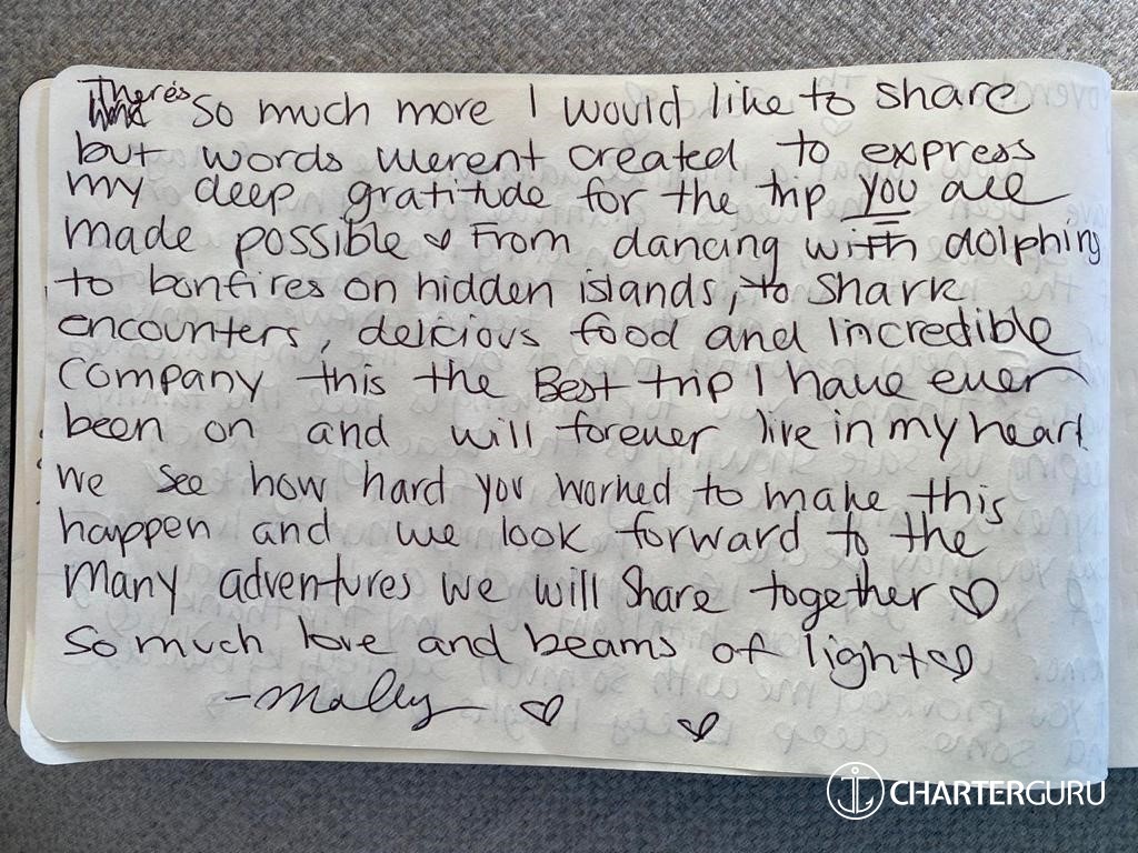 I wanted to reach out to thank you and the entire crew for a fantastic vacation.