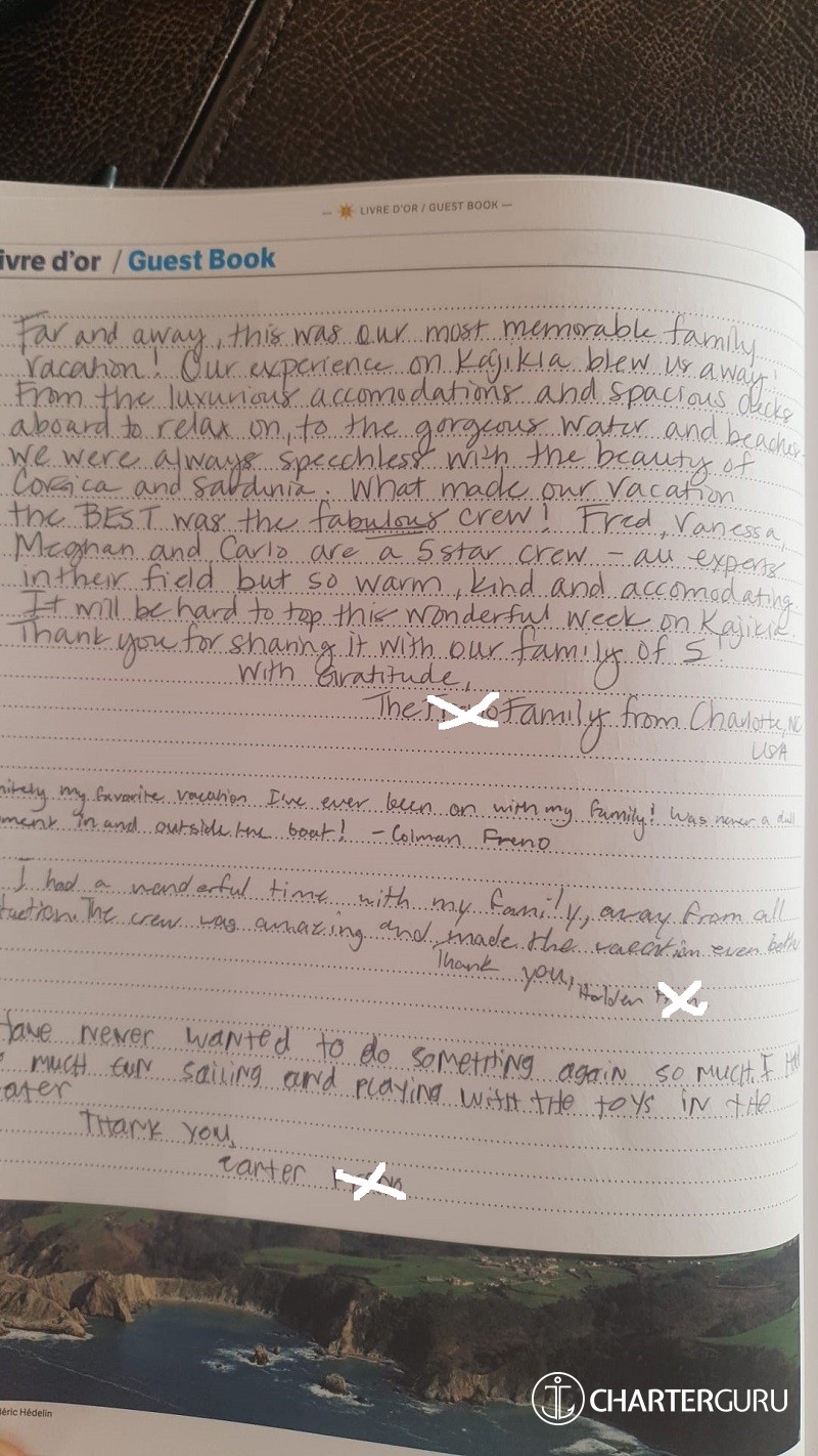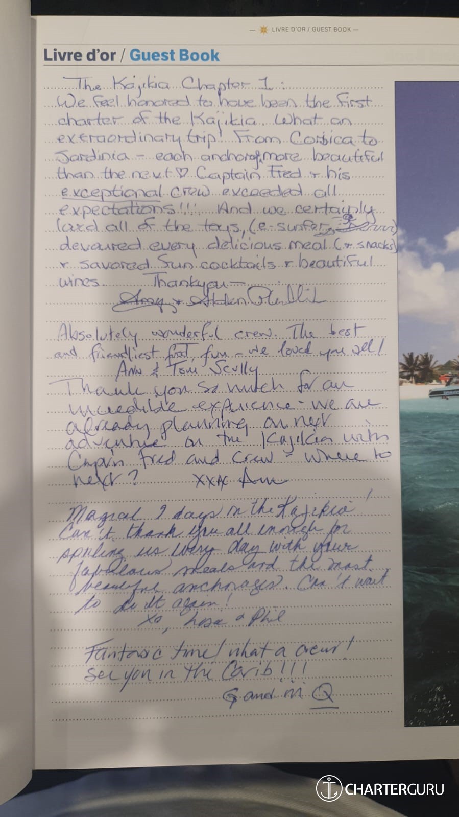 We feel honored to have been the First charter ot the Kajikia. What an extraordinary trip from Corsica to Sardinia. Each anchor more beautifu that the next.