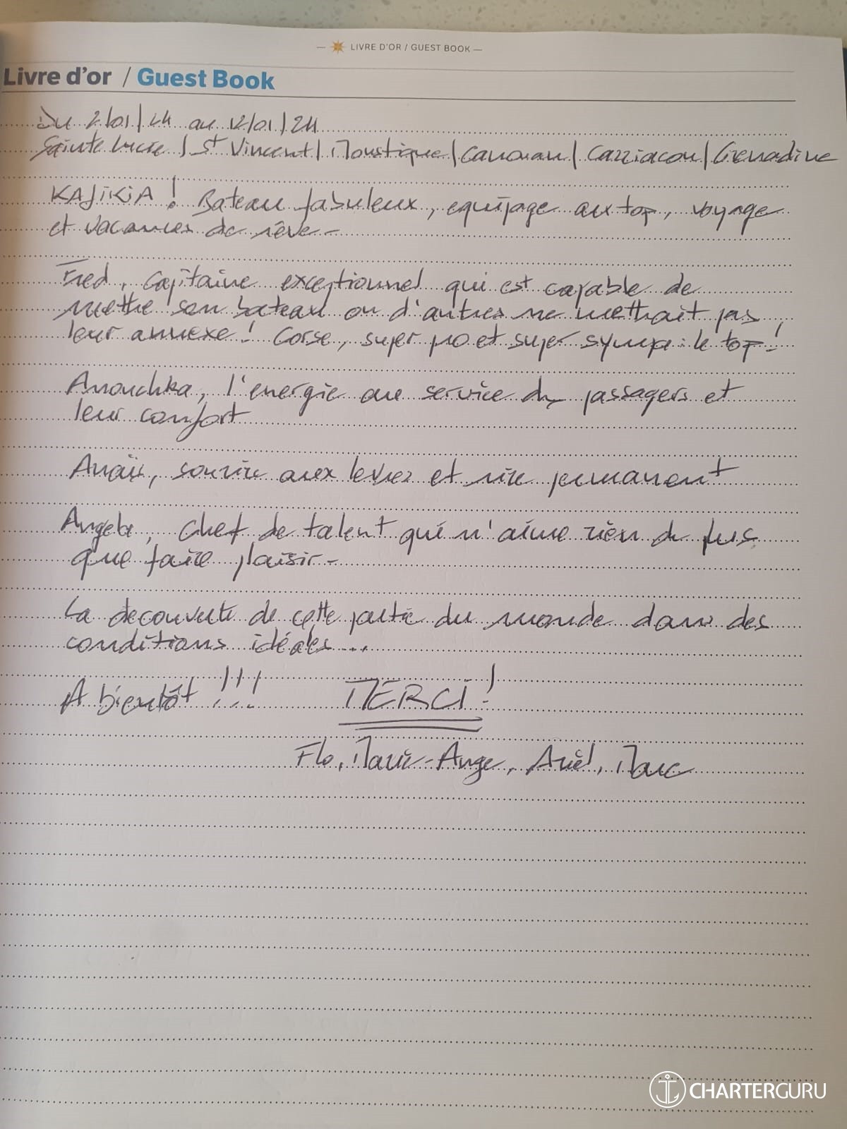 For my part, Captain Fred and Stew Vanessa are very organized and always available. It was a pleasure to work with them.