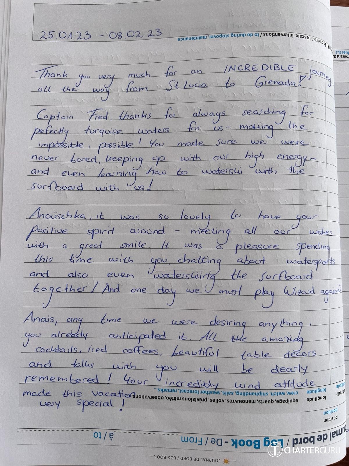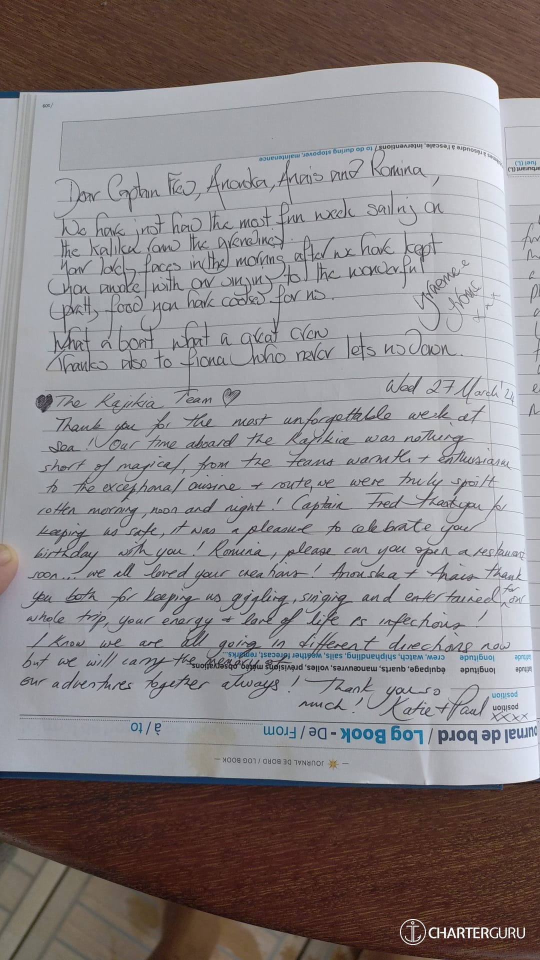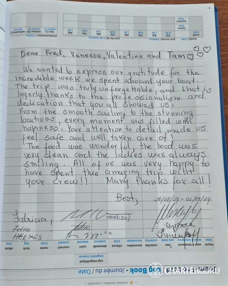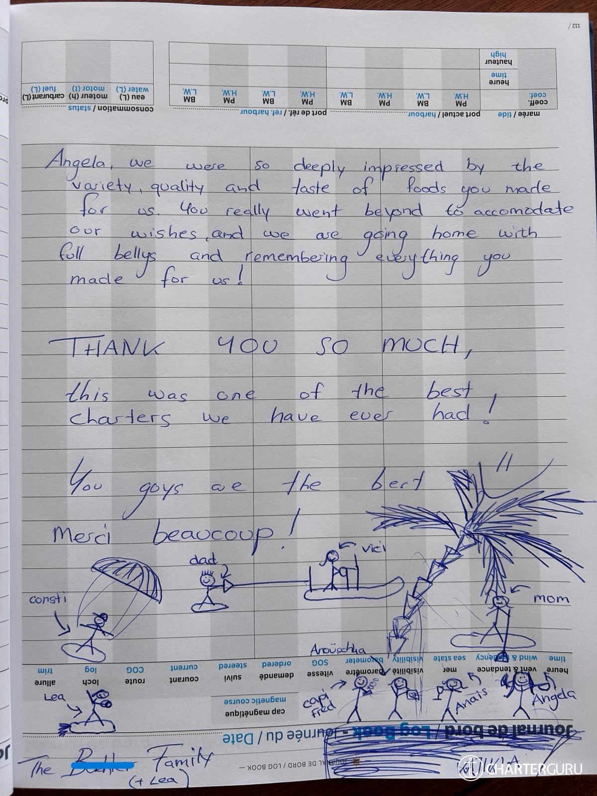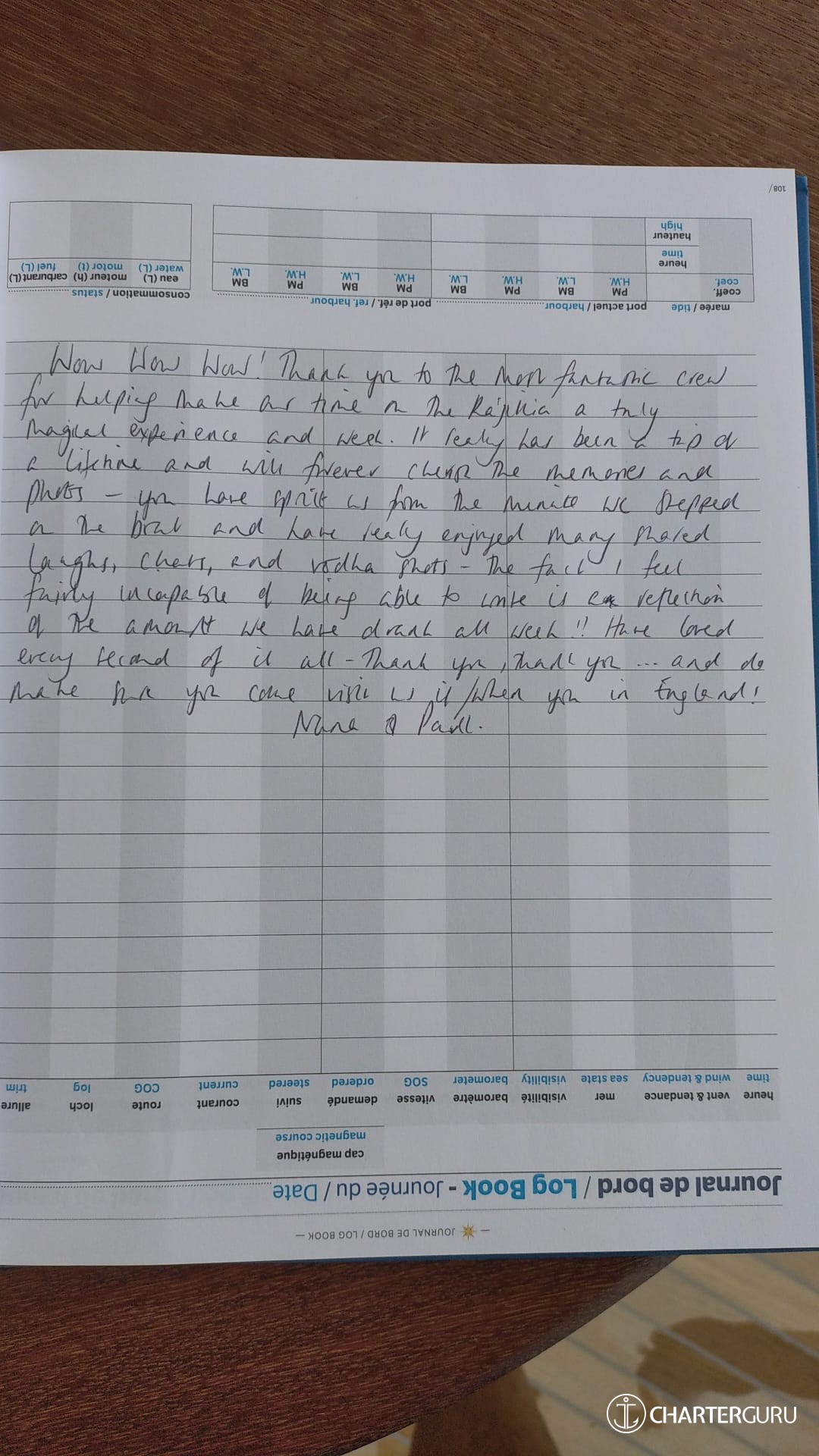 We wanted to express our gratitude for the incredible week we spent aboard your boat.