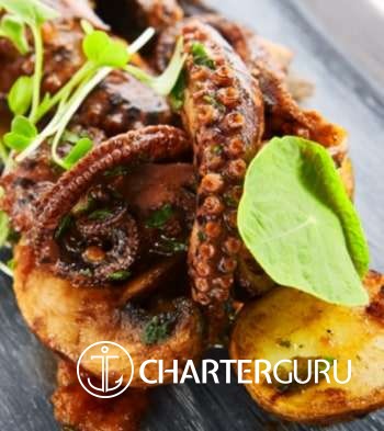 The food is almost too much. We had asked for more simple fare for our lunches this trip and were rewarded with salads, fish, bbq -- Chef Ante is an amazing talent. We had a plethora of fresh seafood as well as pastas and of course his desserts were a hit EVERY night.... This is a luxury charter in every respect.