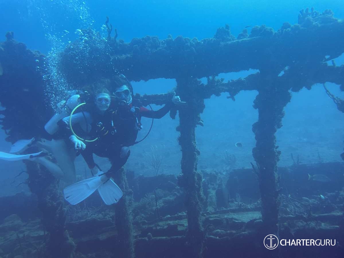 During a seven-day charter, certified divers may dive up to five times, one dive per full charter day, with the guidance of a scuba instructor.