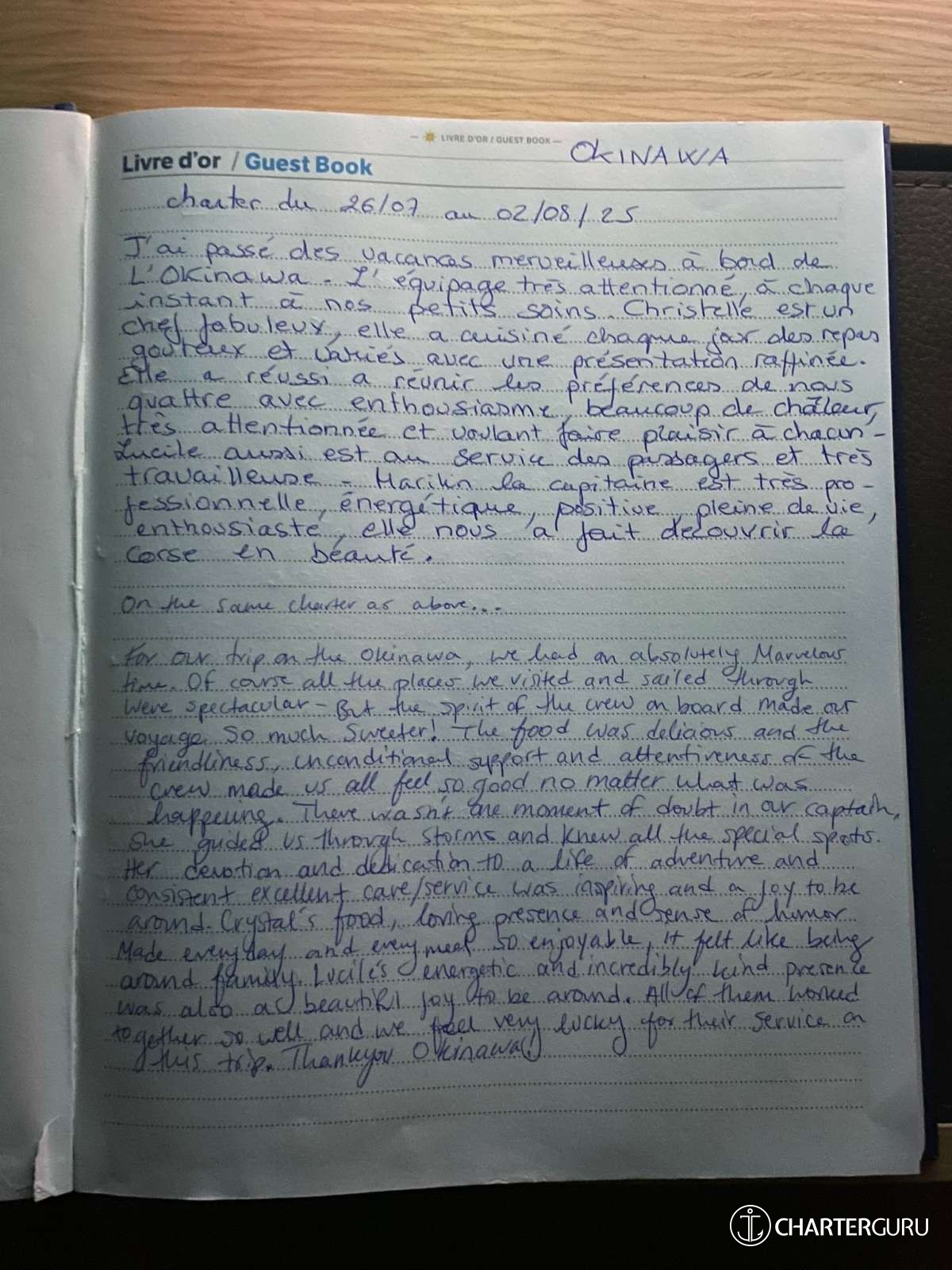 In any case, the crew did an excellent job, demonstrating great availability, especially considering the presence of two very young children on board, with special needs (bottle feeding, special lunches and dinners for the two-year-old, etc.).