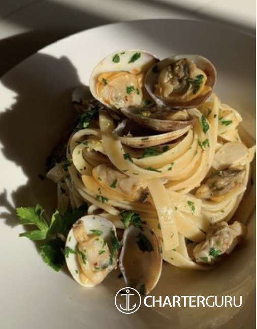 Half Board Option: Includes 7 breakfasts, 4 lunches & 3 dinners. Requires 3 lunches & 4 dinners ashore at client expense. Deduct $150/per person from the all-inclusive charter rate for half board.