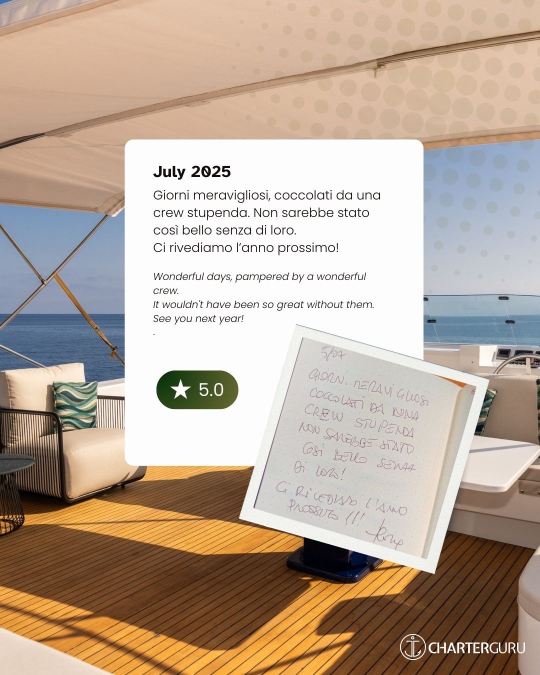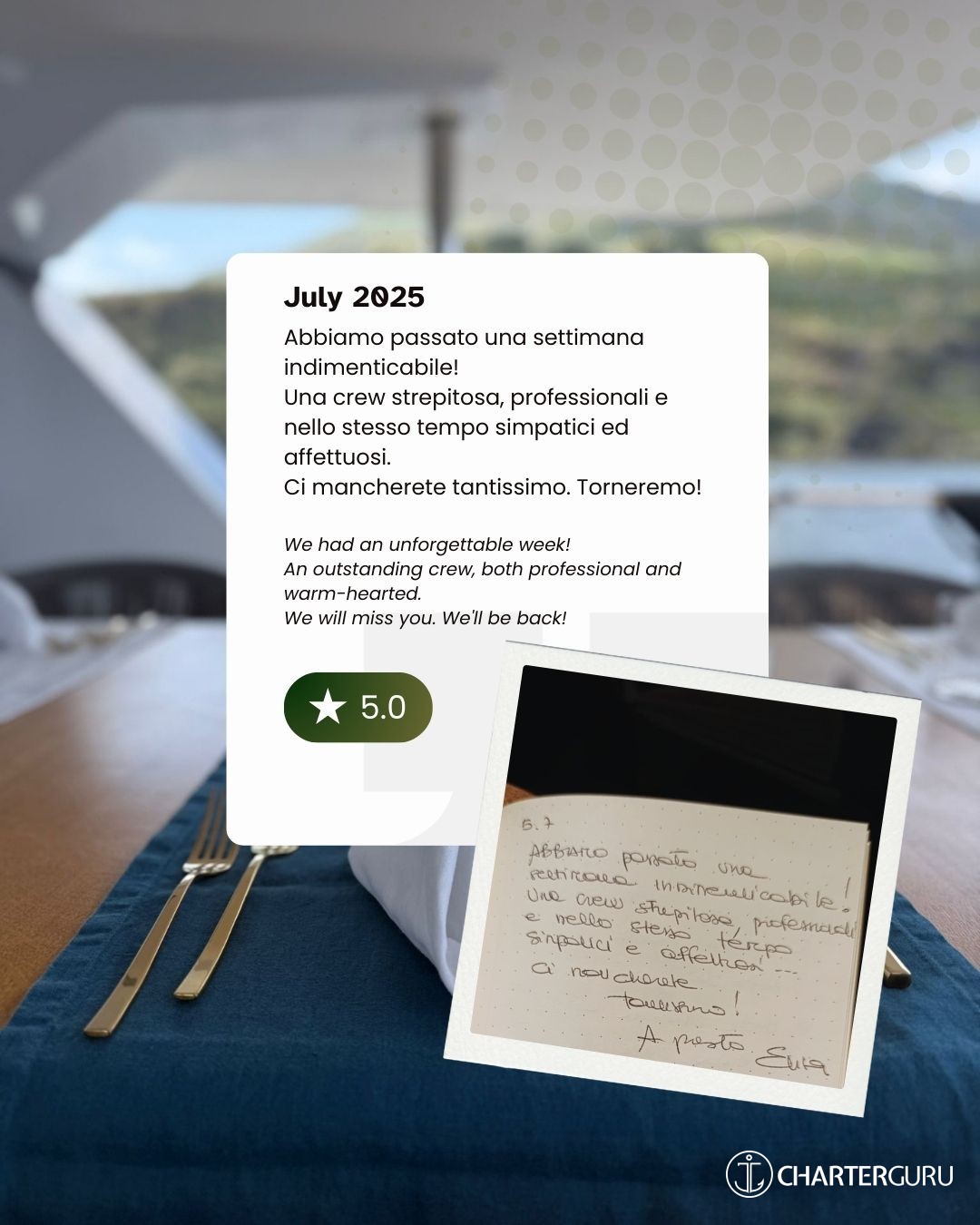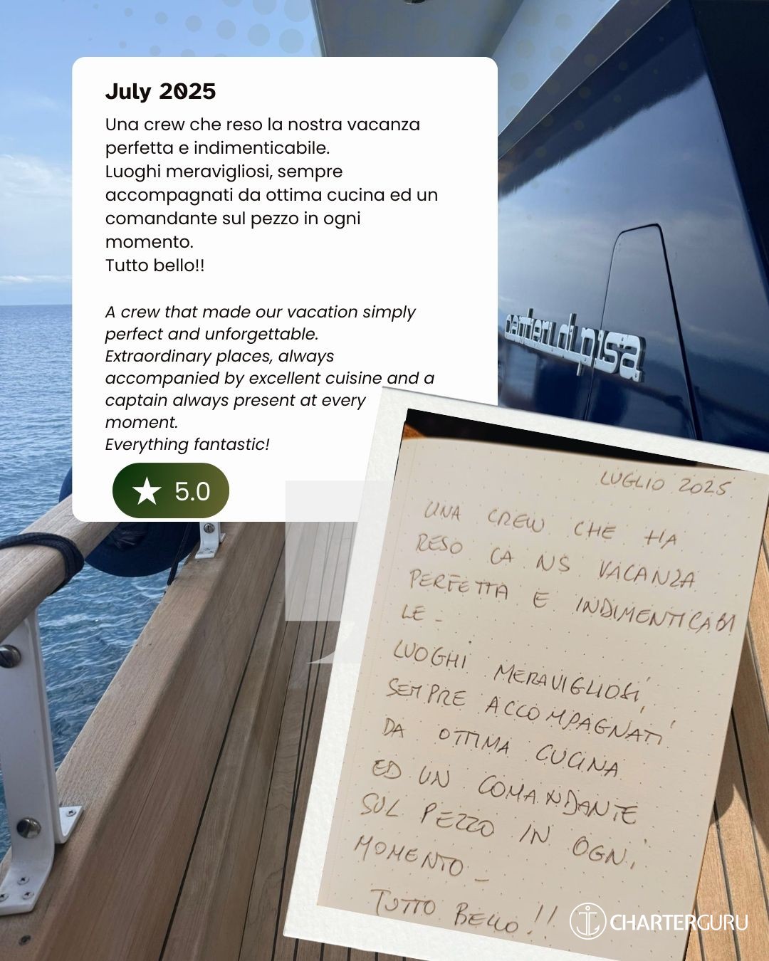 Una crew che ha reso la nostra vacanza perfetta e indimenticabile.