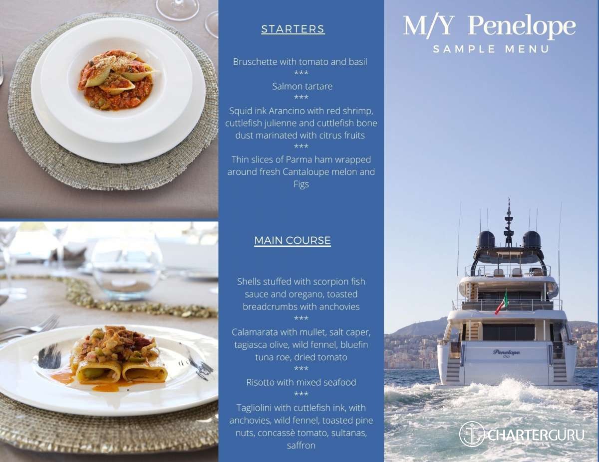 For a motor yacht like Penelope, the expected APA is 25% to 40% of the charter price (€27,500 - €44,000), making the charter cost €137,500 to €154,000. Exact amount will be confirmed after inquiry.