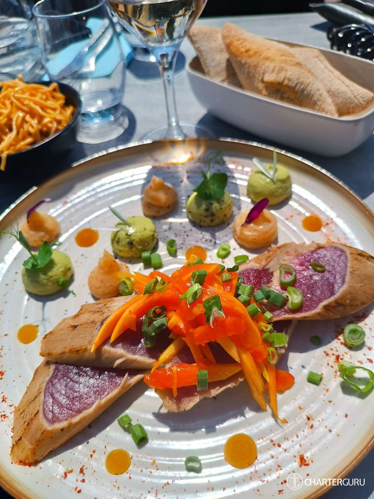 The expenses, such as provisioning, fuel, marina fees, are deducted from the APA. The APA is based on the price of the yacht and ranges from 15% (crewed sailing yachts) to 30% (motor yachts with higher fuel consumption).