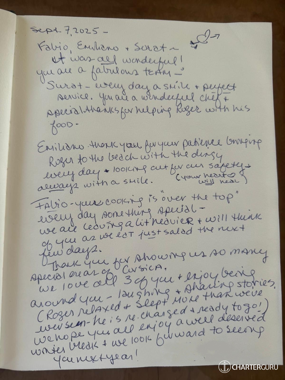 Thank you for making us feel so welcome on board of Shangra and making our vacation so pleasant.