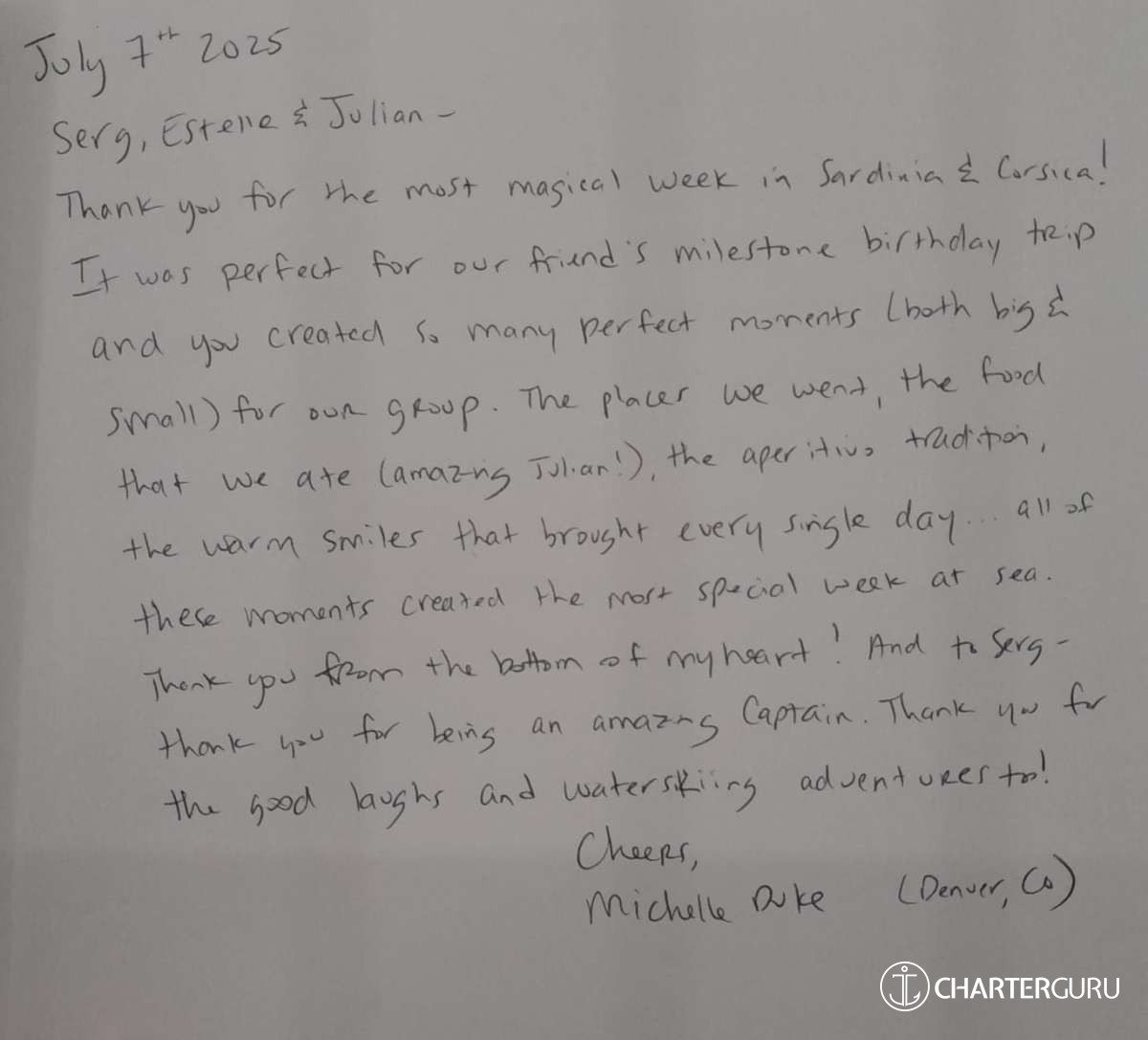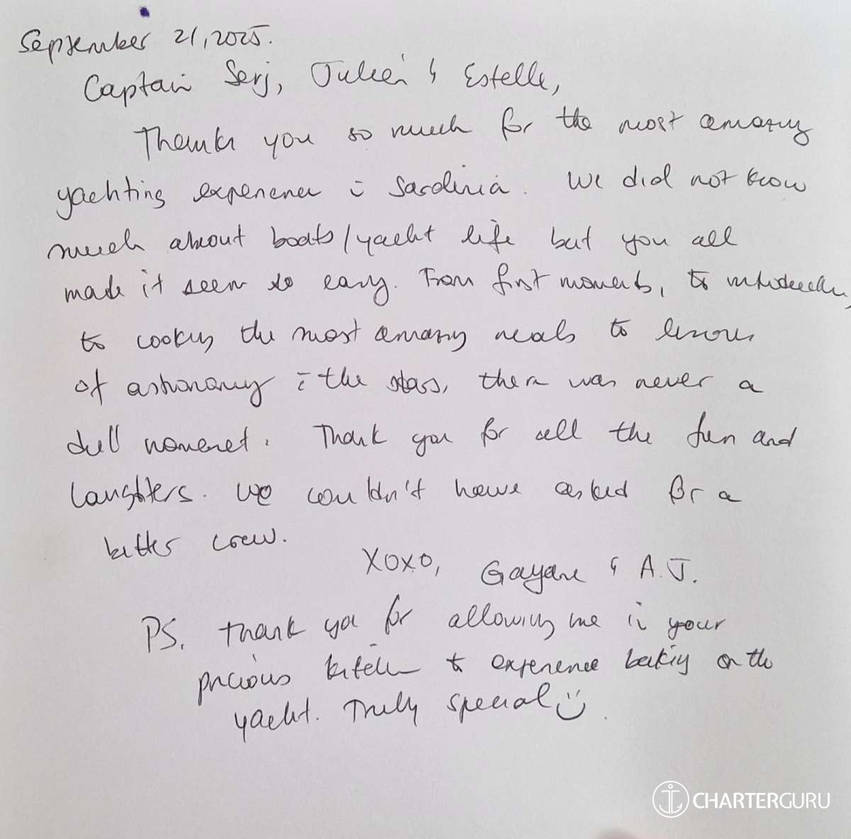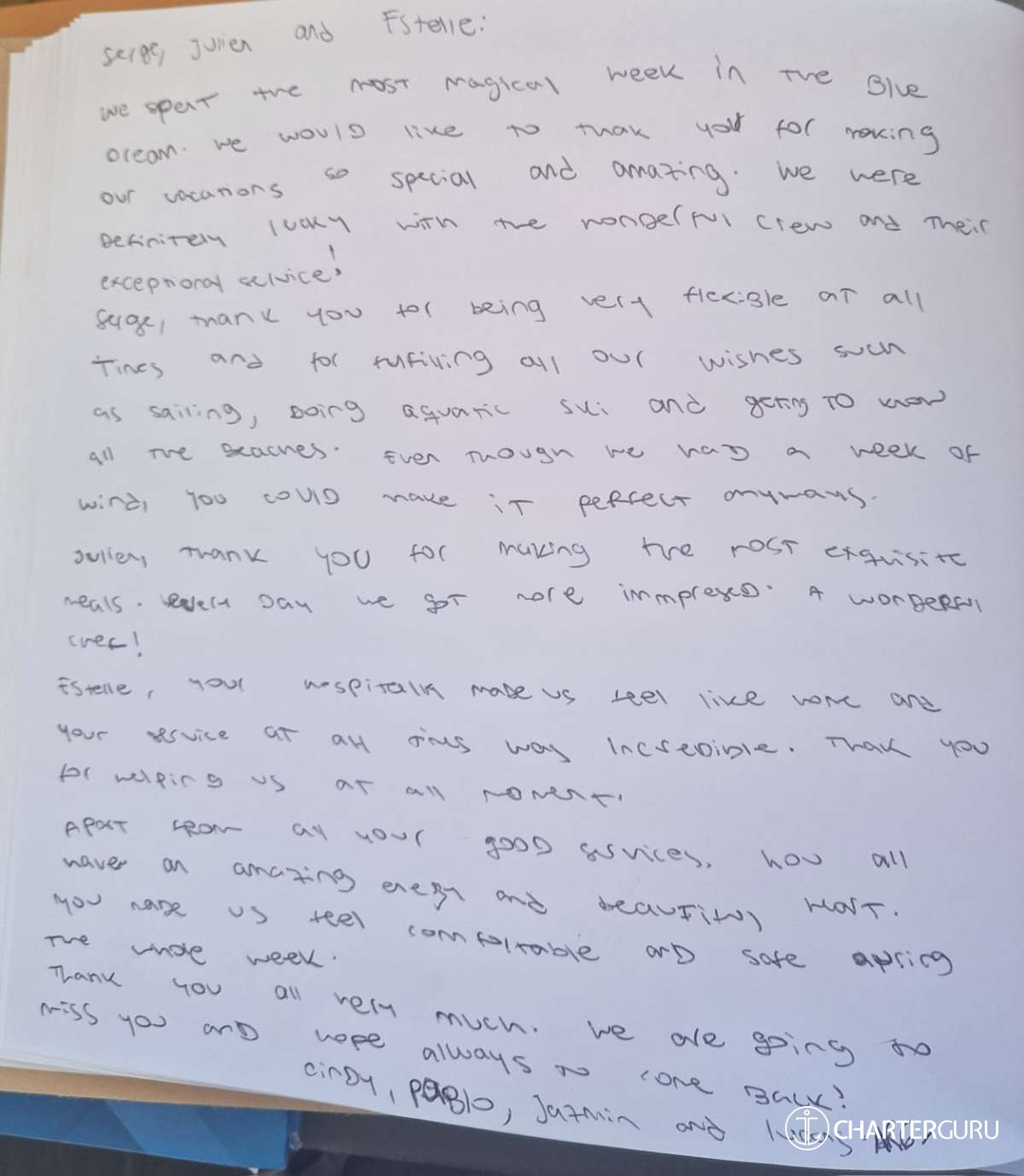 It is with great pleasure that my crew and I will accompany you throughout your cruise on "The Blue Dream".