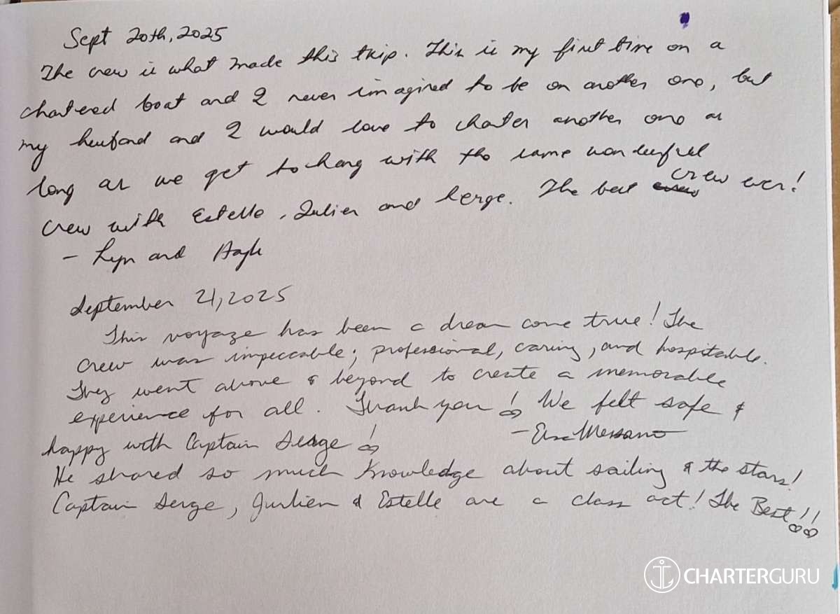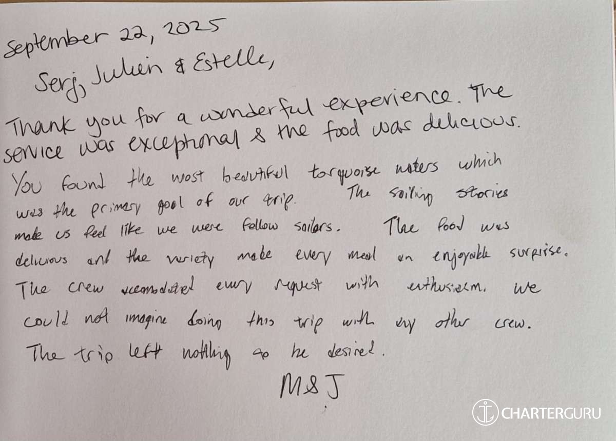 The professional crew of a captain, chef and stewardess is the guarantee of expertise and personalized service of high quality.